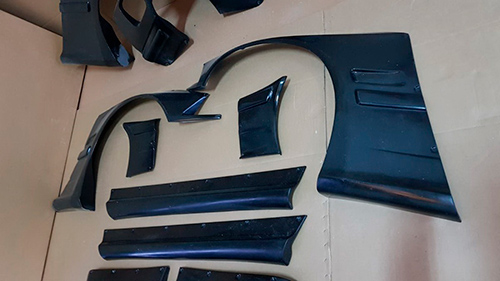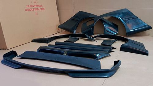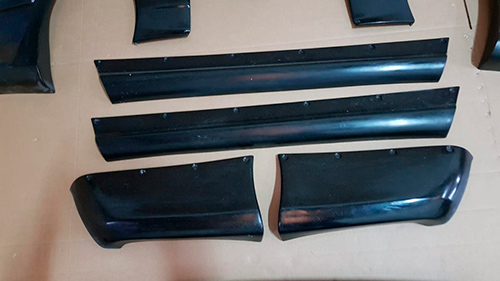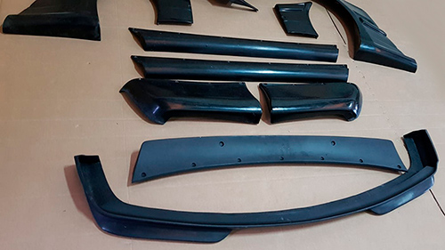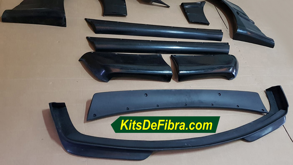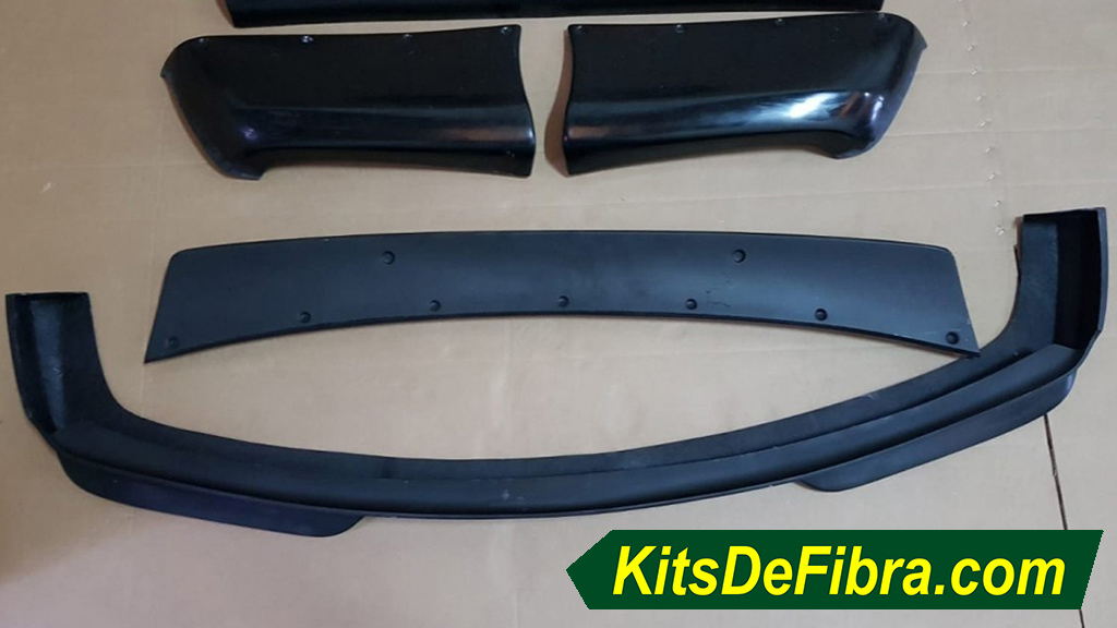 Incluye 2 aletines delanteros, 2 aletines traseros, 2 esquinas de parachoques delantero, 2 esquinas de parachoques trasero, 2 taloneras, 1 alerón y 1 spoiler delantero. |